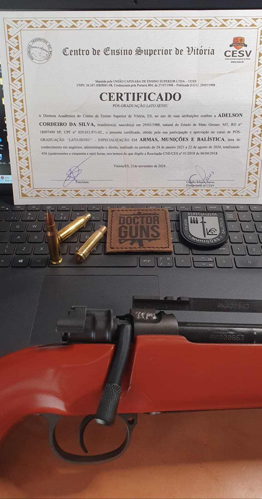 Adelson Cordeiro é armeiro, instrutor, pesquisador e professor especializado em mecânica das armas de fogo. Unindo formações em perícia, balística, engenharia de materiais e mecânica aplicada à experiência prática de mercado.