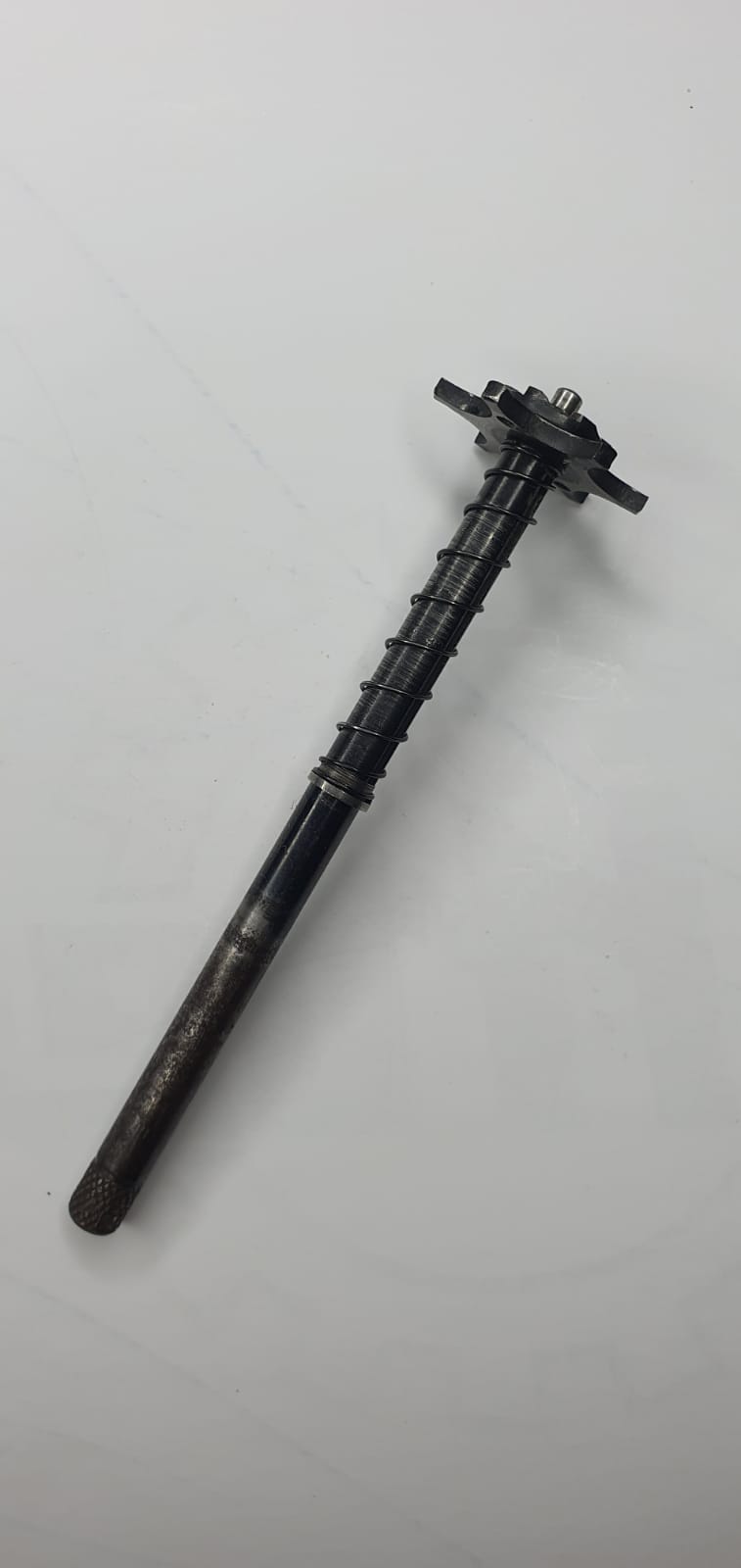 Conjunto do extrator completo do revólver Taurus armação média 6 tiros, . 38 SPL, RT 82, 82S , versão mais antiga com haste central longa e vareta do extrator oca.